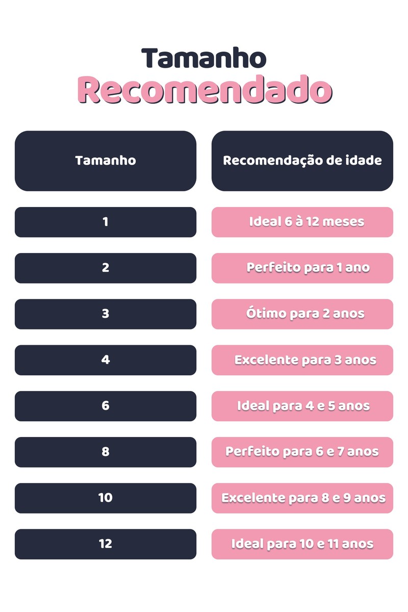 A tabela pode sofrer alterações de 1 á 2 cm para mais ou menos, leve isso em conta na hora de selecionar o tamanho adequado.